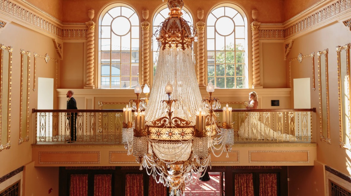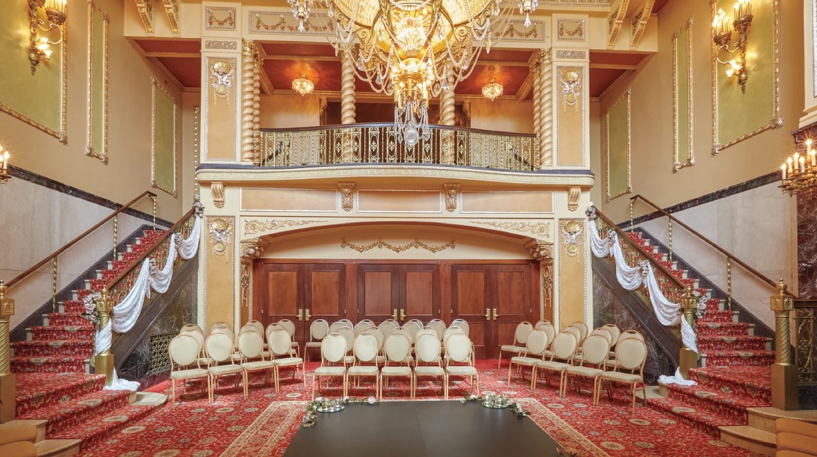 Our elegant Grand Lobby, adorned with original Italian marble, two winding staircases and an original Baccarat crystal chandelier, provides an exquisite backdrop for weddings and galas.